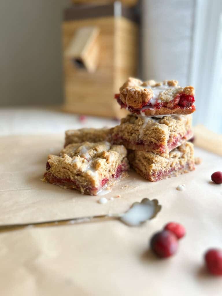 Depending on the cranberries’ natural sharpness, you might want to tweak the sugar in the filling. Taste your cranberry mixture before baking and add a bit more sugar if you prefer a sweeter bar—your taste buds are the best guide here.