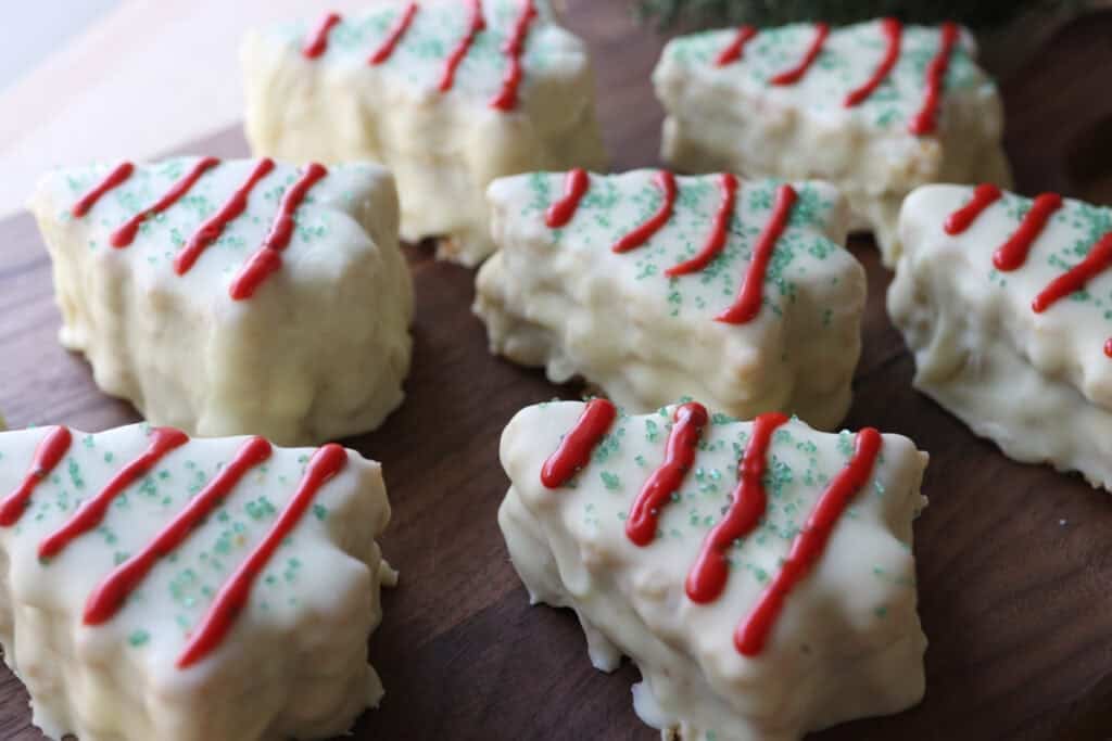 The white chocolate shell creates that smooth coating that gives these Christmas tree snack cakes their signature look and taste.